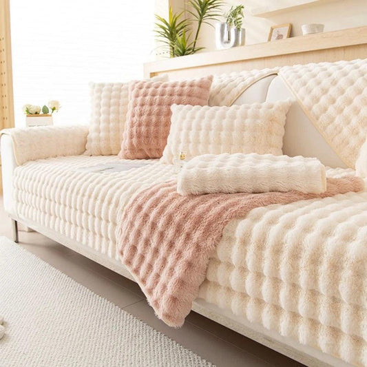 Bubble Imitation Rabbit Fur Plush Sofa Slipcover