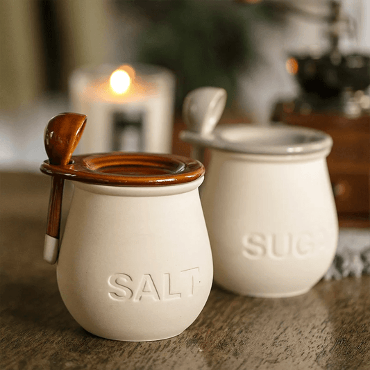 Ceramic Spice Jar with Lid & Spoon Set