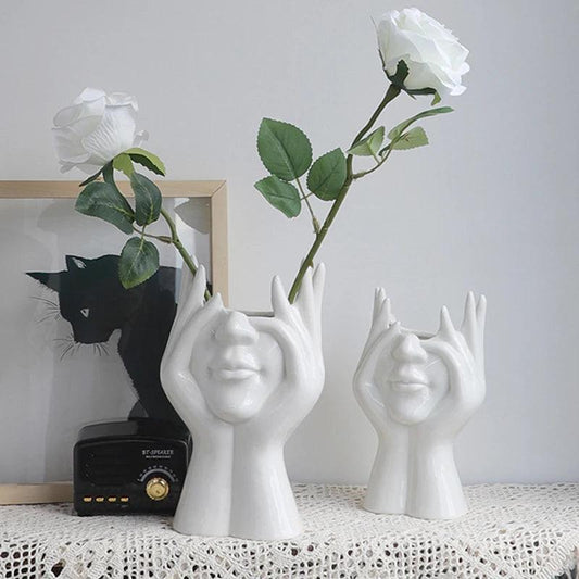 Hand & Palm Ceramic Flower Vase