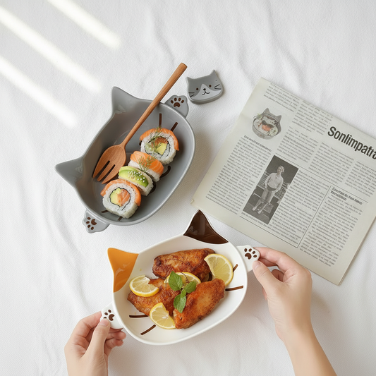 Whisker Wonders: Plato de cerámica con forma de gatito de dibujos animados coreanos