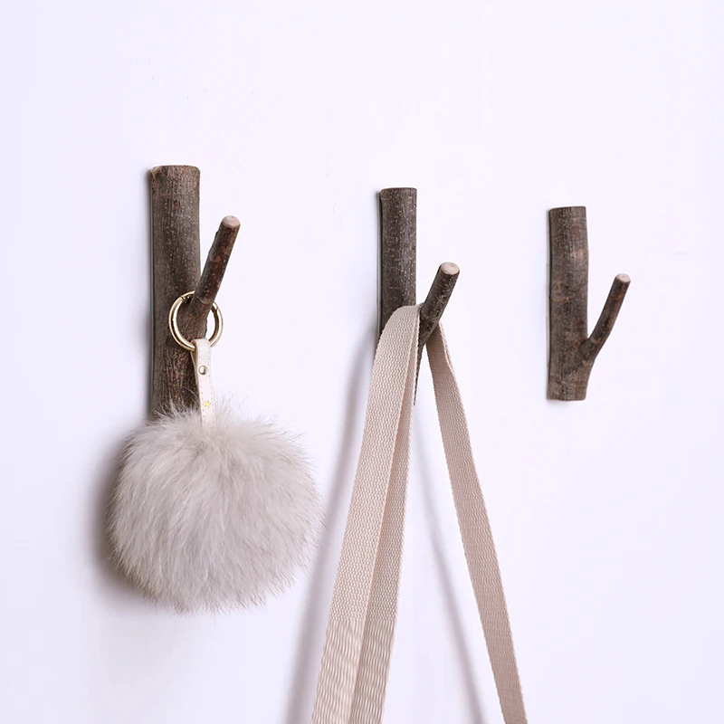 Perchero de madera natural - Perchero creativo de madera con forma de rama de árbol, perchero de pared con forma de rama de madera maciza, perchero de fondo, decoración del hogar